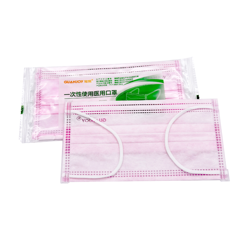 樂康醫療器械_冠悅一次性口罩單片裝粉色